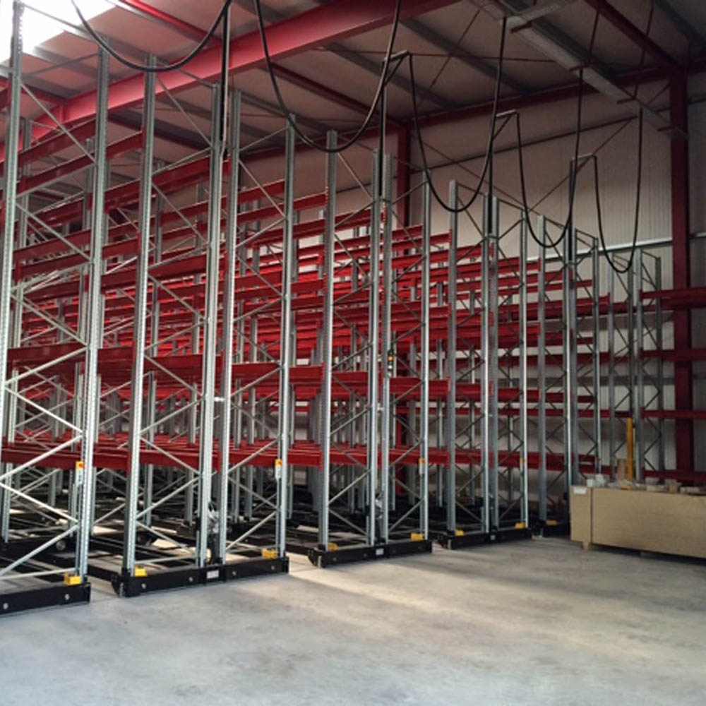 Verfahrbare Palettenregale sind dynamische Regalanlagen und geeignet für palettierte Waren, die auf einer geringen Grundfläche kompakt gelagert werden müssen. Bei diesem Lagersystem werden die robusten Palettenregale auf verwindungssteife Verfahrwagen montiert. Die komplette Regalzeile wird mittels elektronischer oder manueller Steuerung als eine einzige Regaleinheit bewegt. Die Verfahrwagen laufen auf Schienen, die sowohl beim Neubau als auch in bestehende Böden montiert werden können. Dadurch ist für jeden Regalblock des Palettenregals nur ein Bediengang notwendig. Das führt zu einem hohen Raumnutzungsgrad, da immer nur der Gang geöffnet ist, aus welchem die Ware in das Regal ein- oder ausgelagert wird.