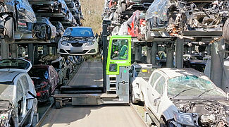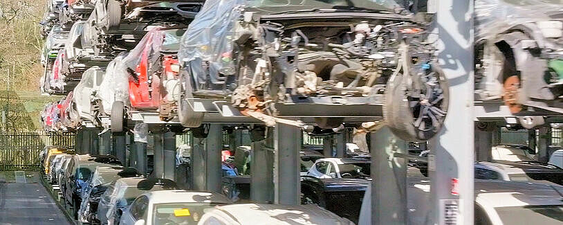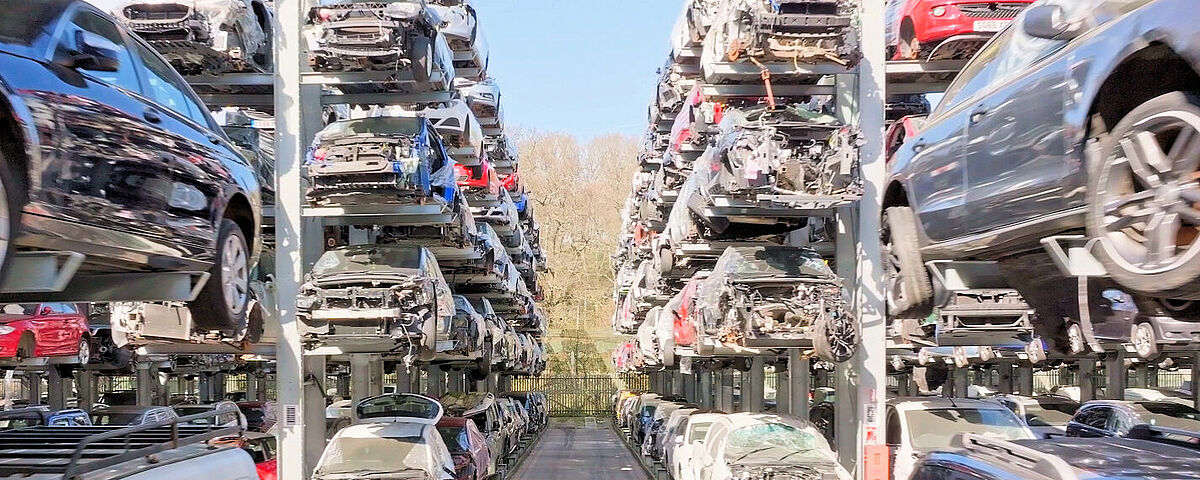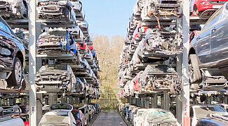 Um eine möglichst hohe Zahl an Altfahrzeugen ständig im direkten Zugriff zu haben, lagert Silverlake Automotive Recycling, Hampshire, Pkw, SUV und Transporter in Kragarmregalen von OHRA. Dank der über 8 Meter hohen Regale können fünf bis zu jeweils 2 Tonnen schwere Fahrzeuge sicher übereinander „gestapelt“ werden. Die Regalzeilen sind zudem mit Führungsschienen ausgestattet, sodass die Ein- und Auslagerung der Altfahrzeuge mit einem Seitenstapler erfolgen kann. So können die Gassen zwischen den Regalen besonders schmal gehalten werden und mehr Regale auf der Fläche aufgestellt werden. Rund 2.500 Altfahrzeuge kann Silverlake daher auf dem Gelände lagern.